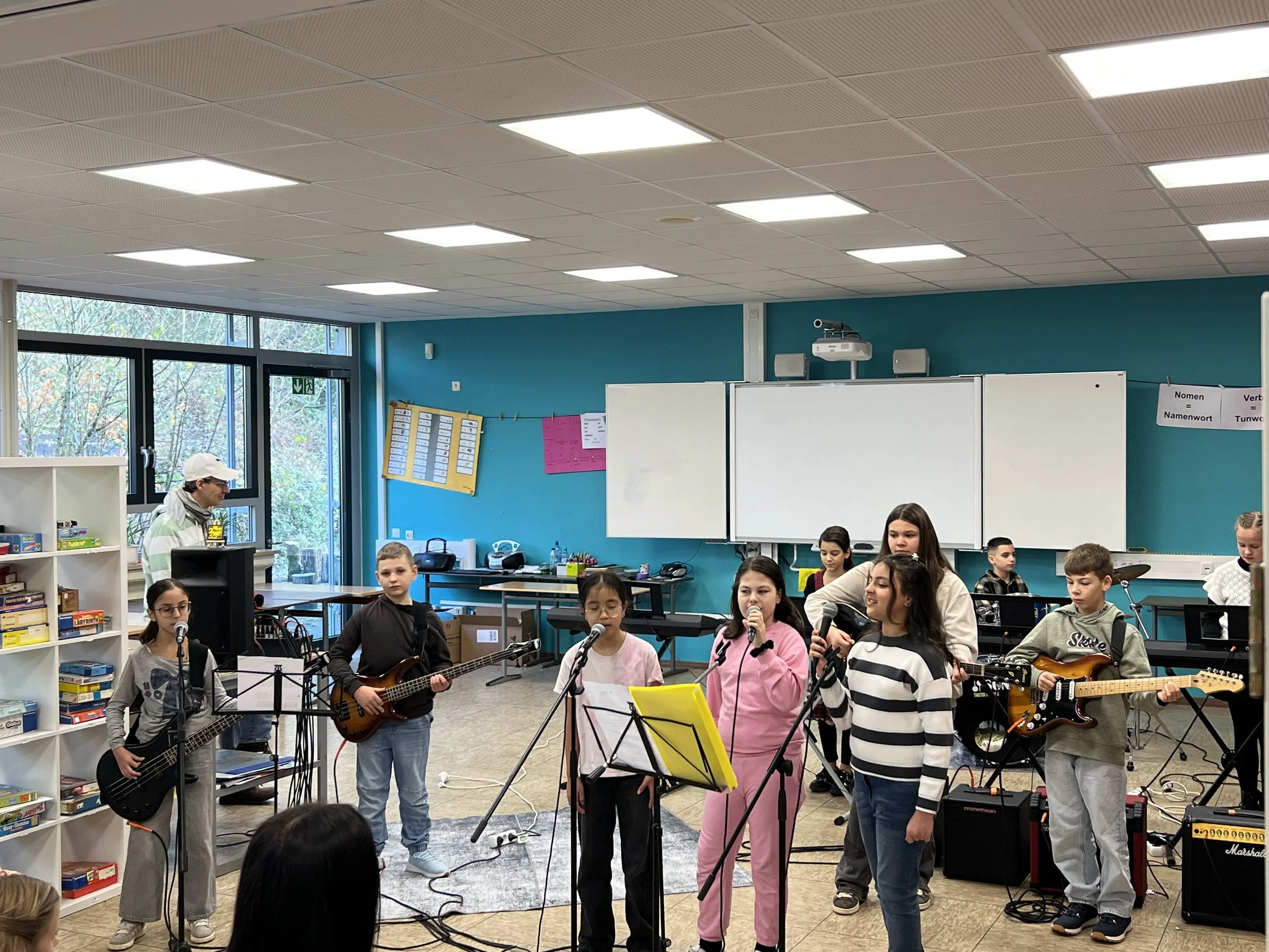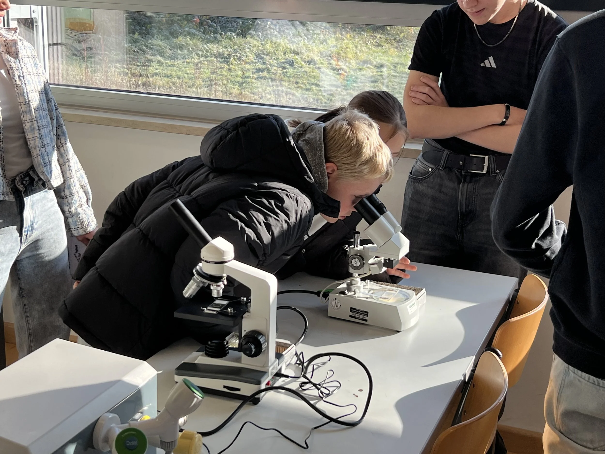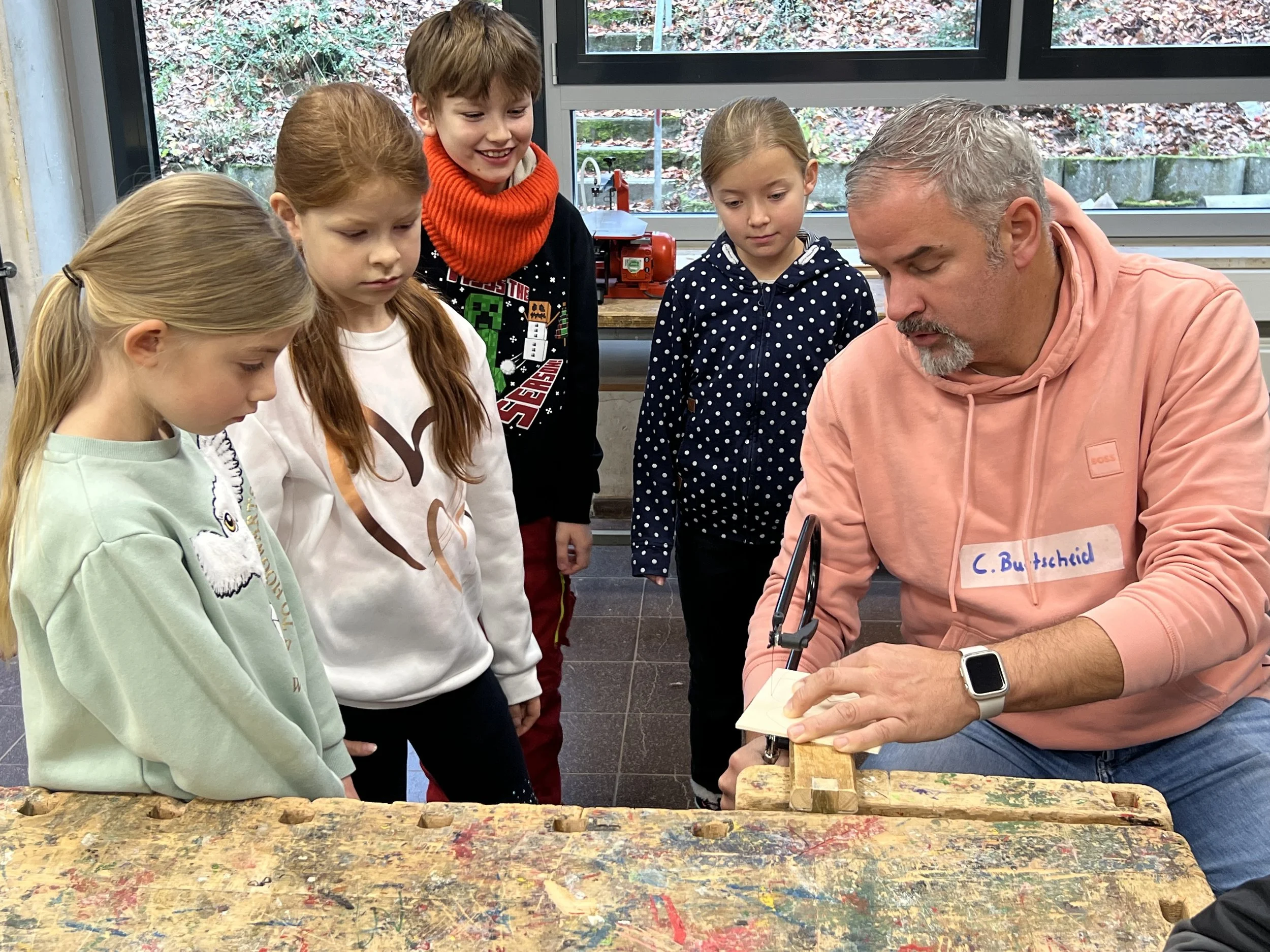 In der Sporthalle konnten junge Gäste beim Stationentraining der Sportklasse ihre Geschicklichkeit unter Beweis stellen. Im Chemieraum wurde es spannend, denn dort lernten die Besucher*innen beim Brennerführerschein, wie man sicher mit dem Gasbrenner arbeitet. Musikalisch wurde es bei der Instrumenten-Schnupperstunde, bei der die Bandklasse mit kleinen Auftritten begeisterte. Auch naturwissenschaftliche und handwerkliche Neugier kam nicht zu kurz: Beim Sägen an der Technik-Station, beim NaWi-Forscher-Labor oder in der Küche, wo die Station „Tatort Küche“ kreative Experimente bereithielt. Ebenso konnte eine Schnupper-Stunde mit den Schulhunden besucht werden.